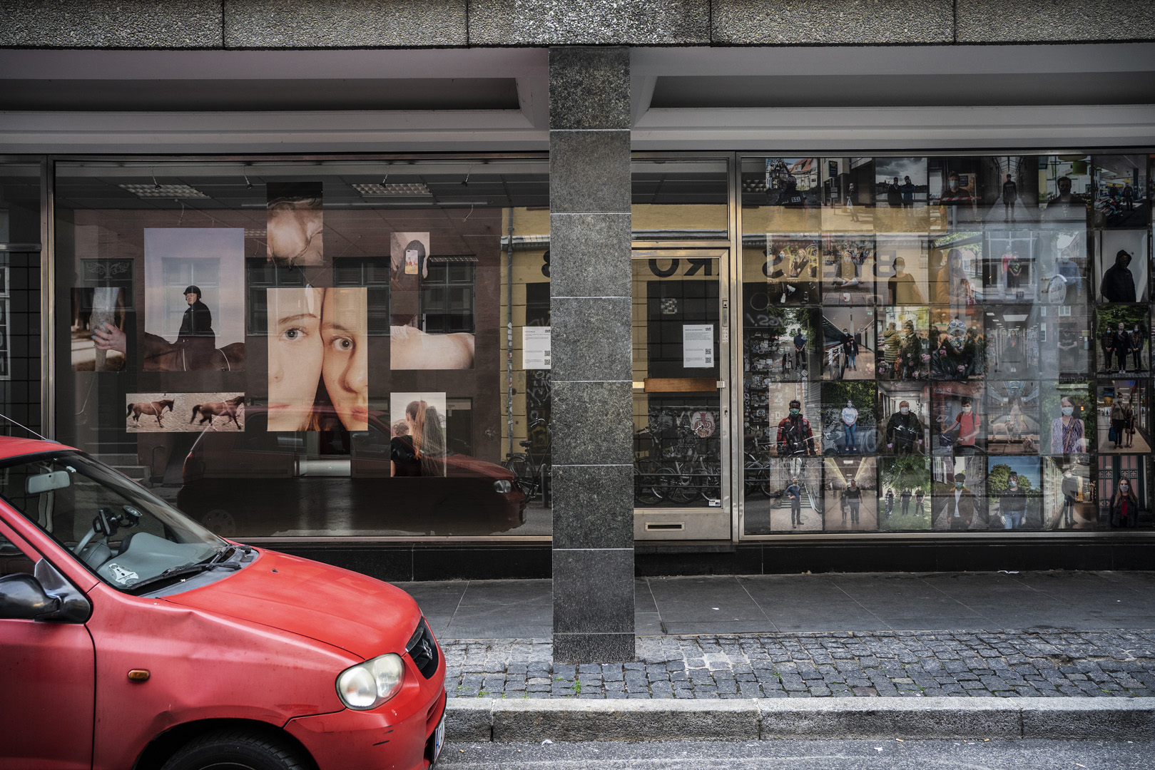 Da det for tiden ikke er muligt at samle 300-400 mennesker på et udstillingssted, har vi i stedet sluppet vores værker løs i en lang række vinduer rundt omkring i byen.